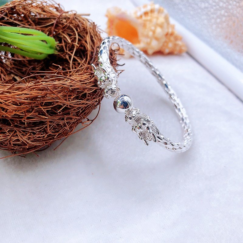 正品925小众设计手工编制款精品双龙戏珠开口手镯重约33克含量9热门设计联盟服务商