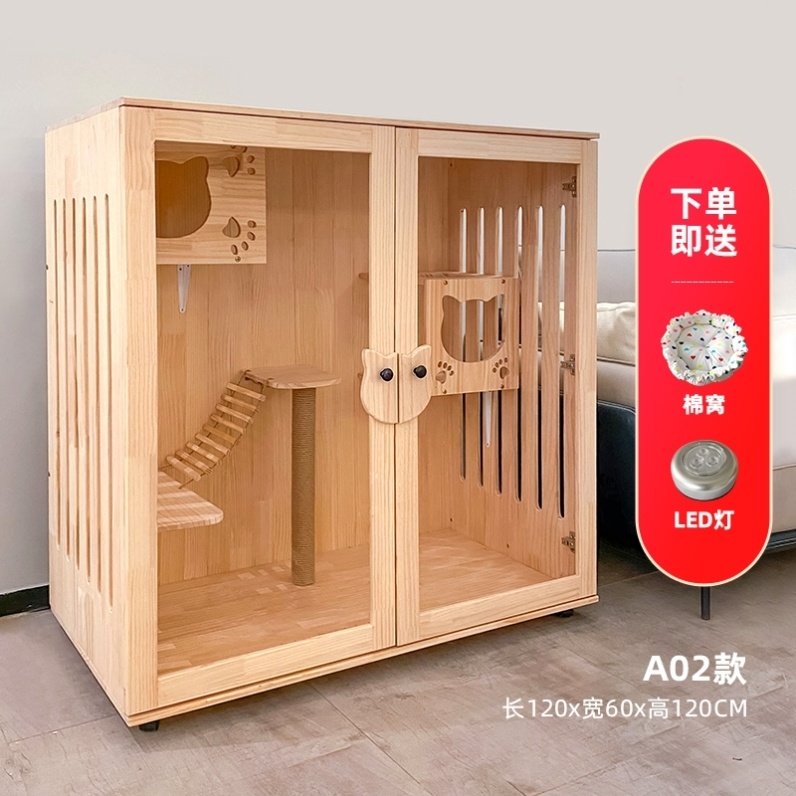 实木猫笼家用宠物封闭式展示笼围栏展示柜保暖带厕所室内柜子透明热门设计联盟服务商