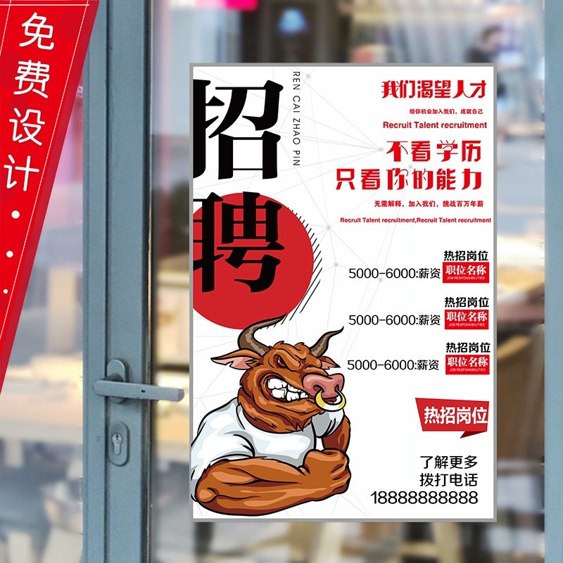 免费设计定制商场店铺招聘海报贴纸企业招工广L告玻璃门贴自粘墙热门设计联盟服务商