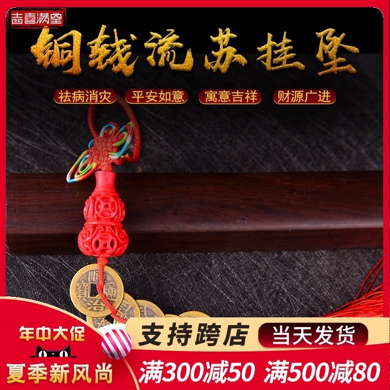 纯铜五帝钱朱砂真品挂件铜钱挂饰招財家居装饰品礼品热门设计联盟服务商