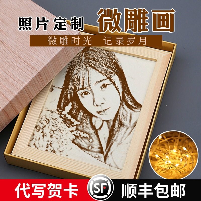 木刻画定制照片实用微雕送女生闺蜜生日礼物女朋友爸爸父亲节礼物热门设计联盟服务商