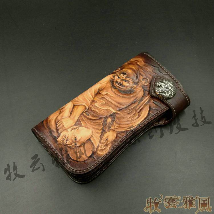 包邮 定制 原创设计 进口牛皮手工雕刻 长款钱包 钟馗做鬼财布夹热门设计联盟服务商