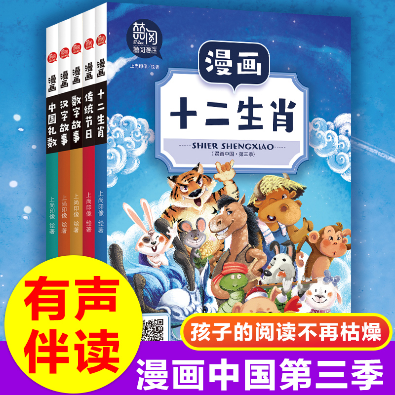 漫画中国第三季全5册漫画版国学经典少儿历史科普读物十二生肖传统节日汉子故事中国礼数数字故事籍老师推荐热门设计联盟服务商