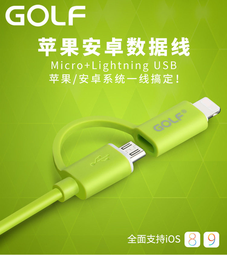 GOLF二合一数据线iPhone6S苹果78手机5安卓通用5S一拖二充电器热门设计联盟服务商