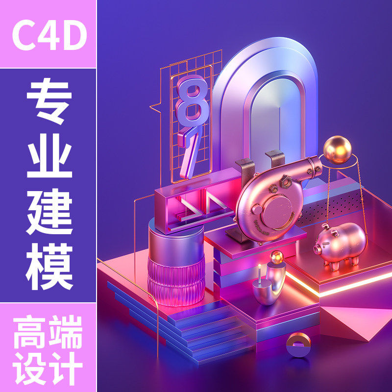C4D产品建模渲染卡通人物模型代做电商场景详情页设计c4d动画制作热门设计联盟服务商