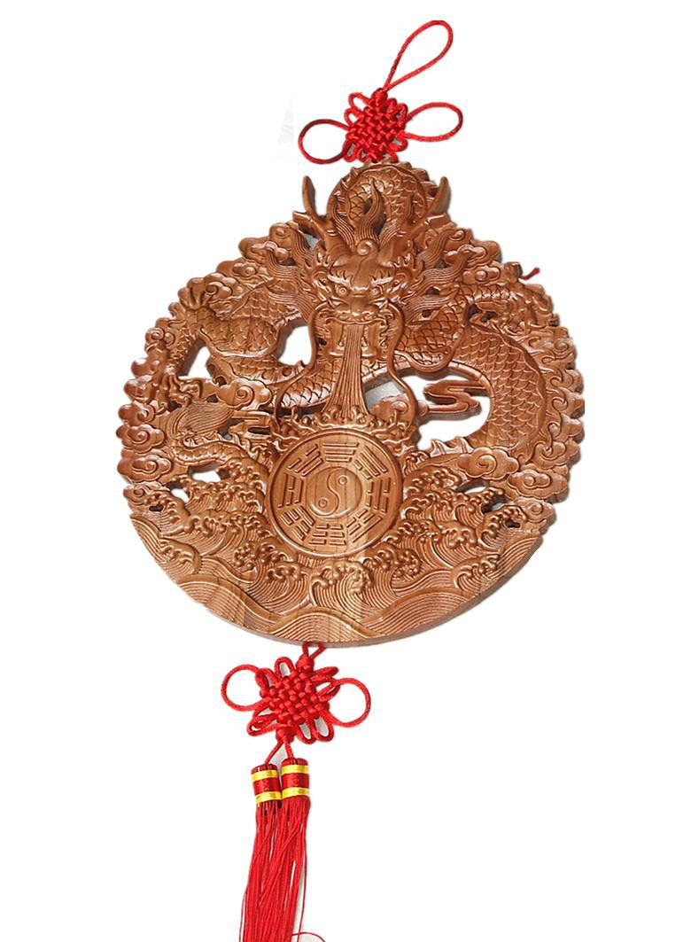 桃木精雕神龙吸水桃木八卦镜家庭公司企业风水挂件热门设计联盟服务商